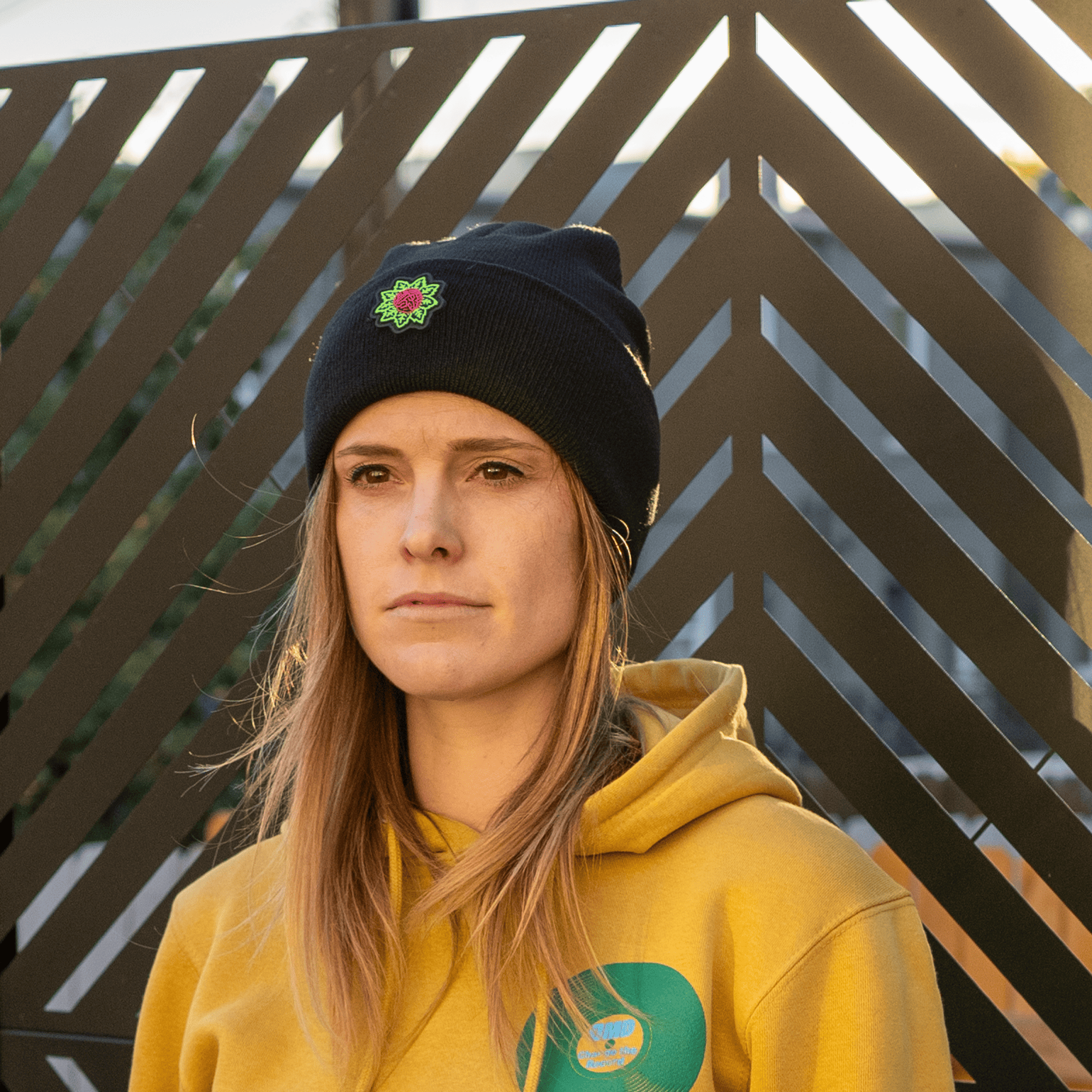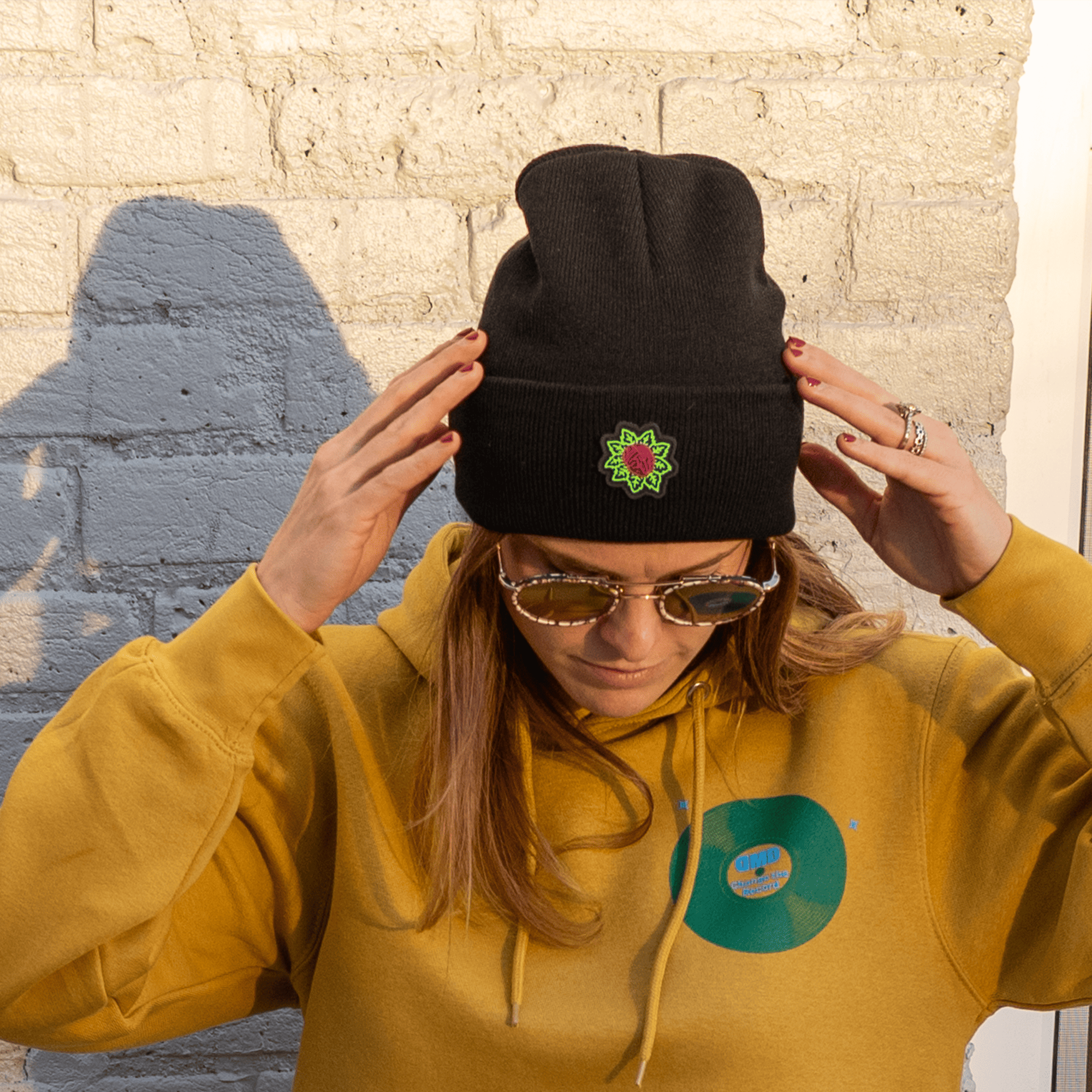 Acrylic thick cuff beanie with the mindflower icon patch. Keep that noggin warm.