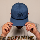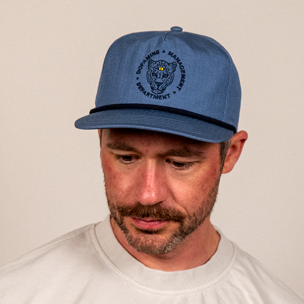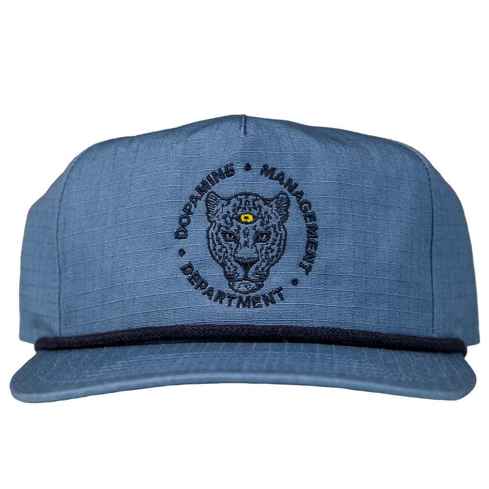 Meet the latest edition of our Leopard Snapback. Now in a blue slate colorway.