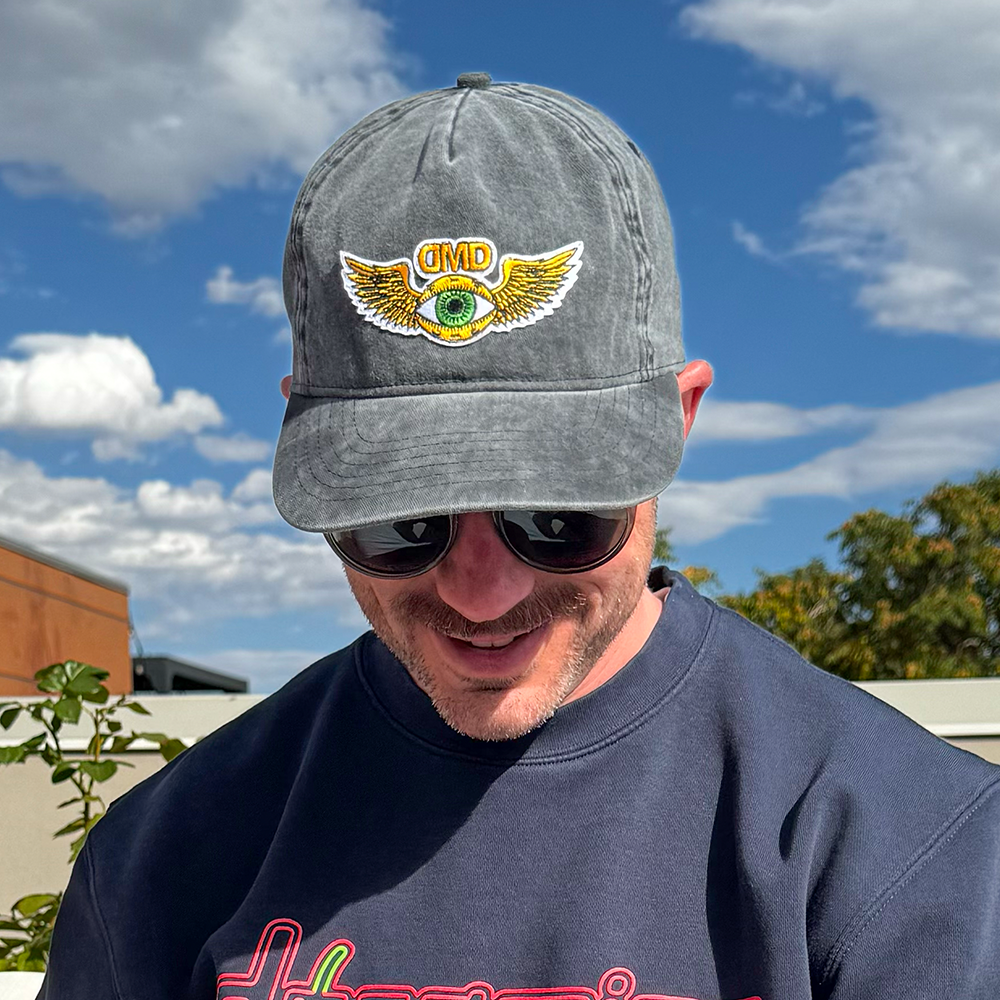 The standout feature is the embroidered Third Eye patch, a powerful design symbolizing vision, awareness, and exploration. The central green eye is framed by golden wings, representing freedom and perspective..