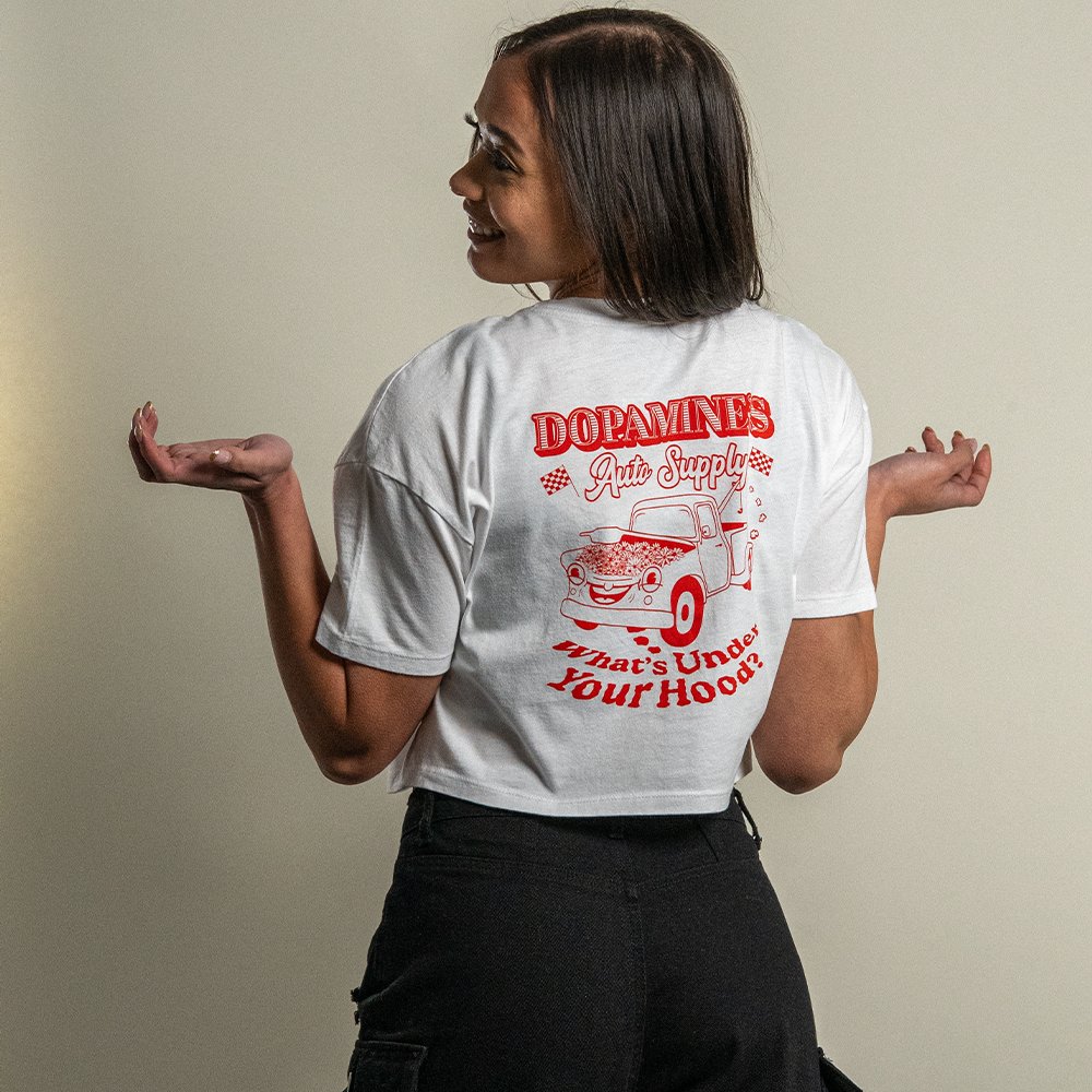 Start your day with a message that matters. The Under the Hood Crop Top Shirt invites you to slow down, self-reflect, and stay mindful. Featuring the bold question “What’s Under Your Hood?” across the back, this tee encourages you to check in with yourself and treat your inner voice with care.