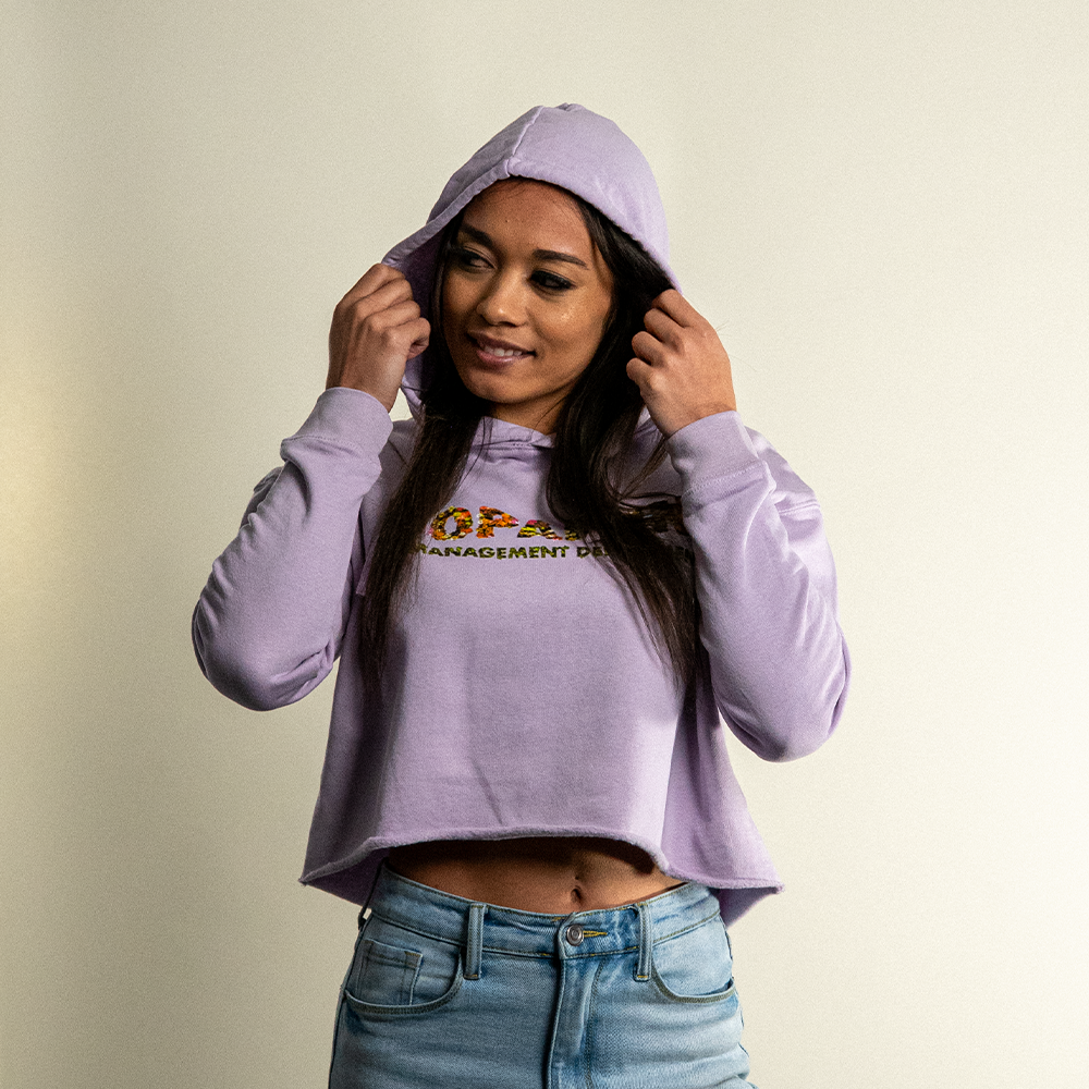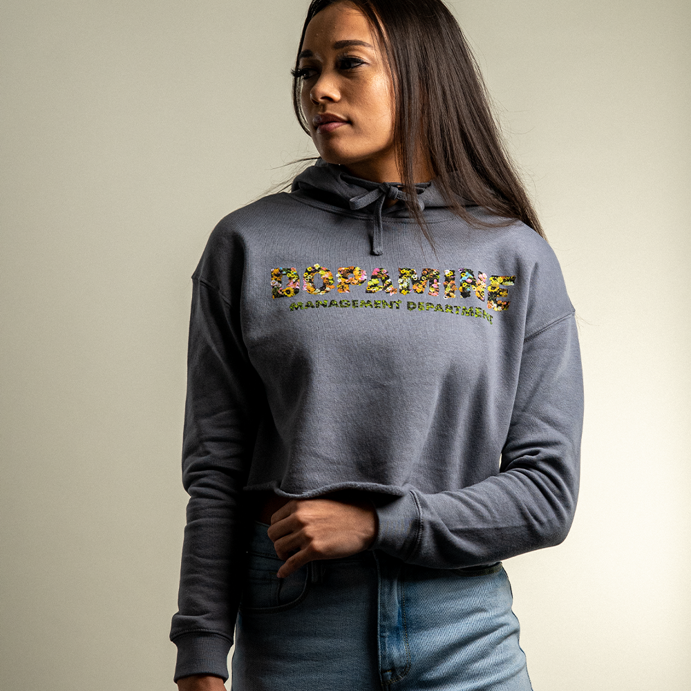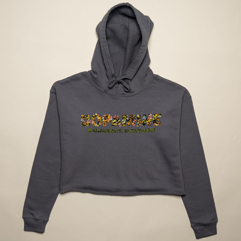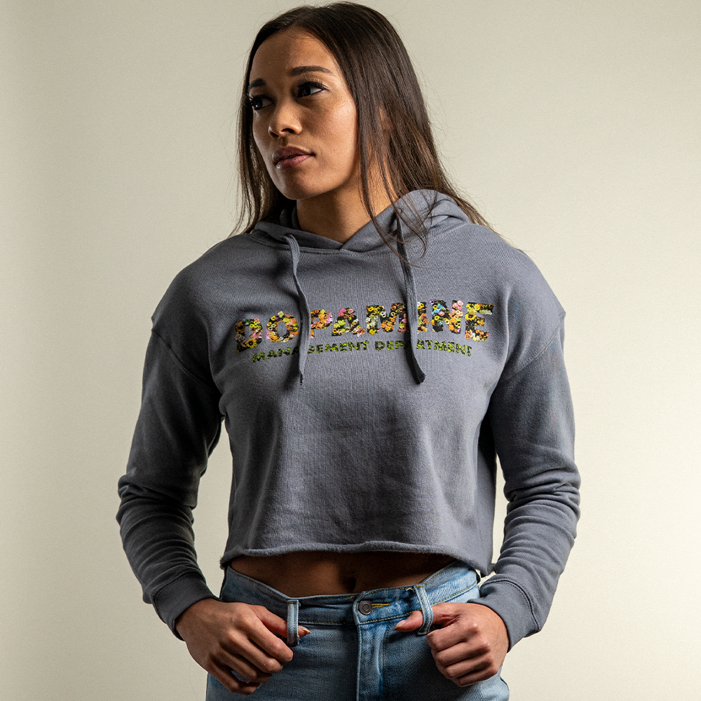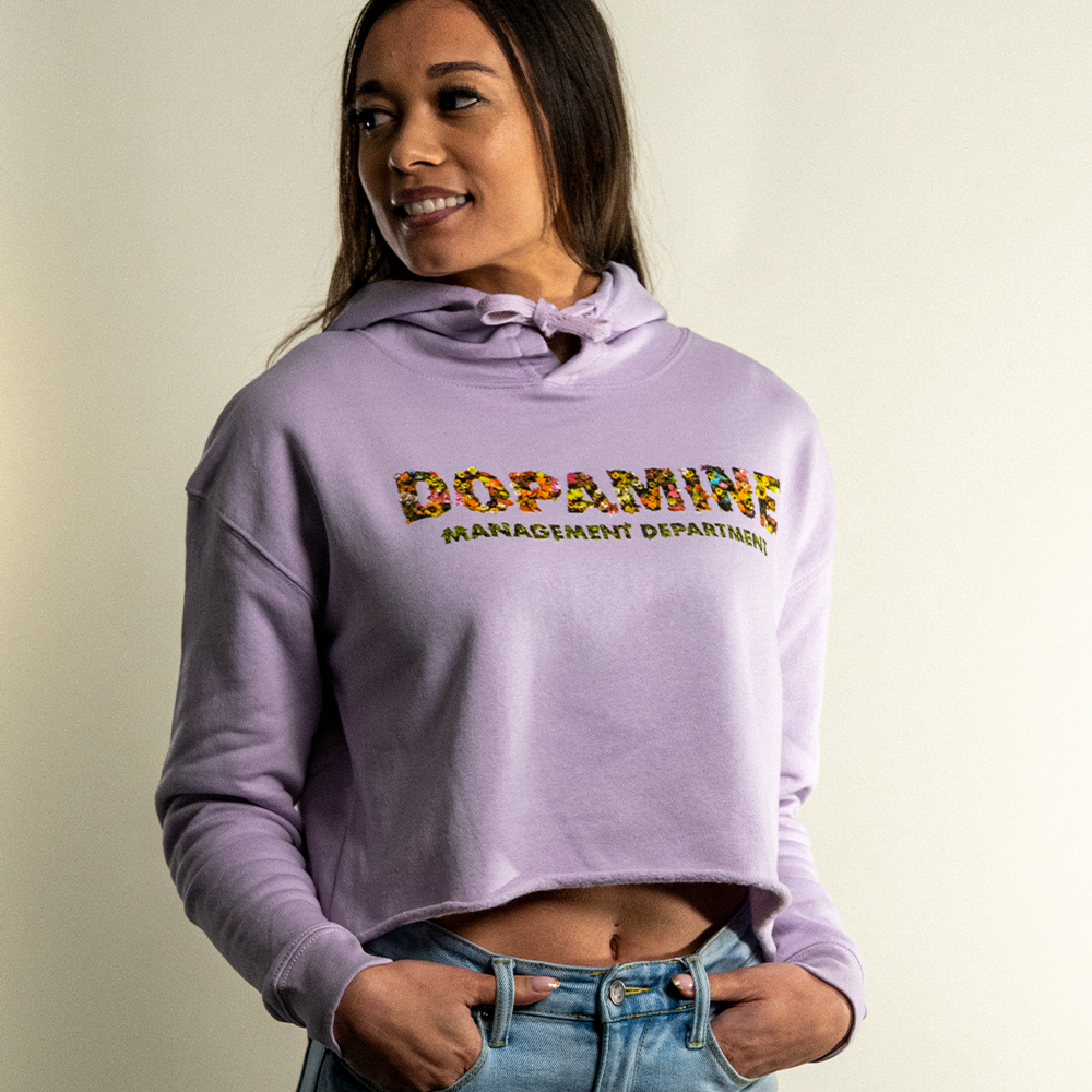 Our bold, vibrant wallflower design now available in a super comfortable crop top fleece hoodie!